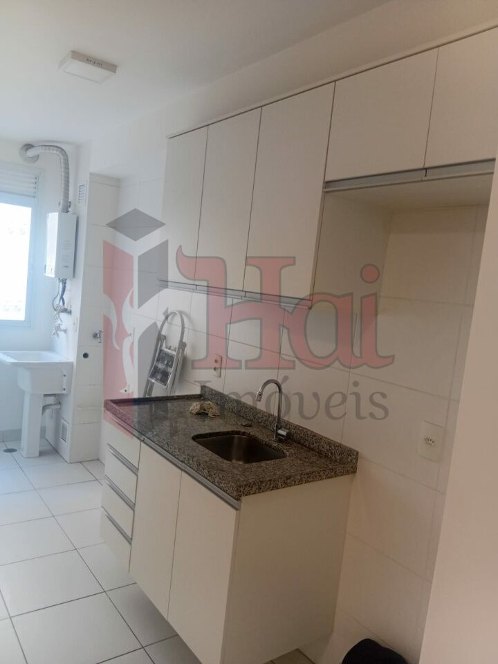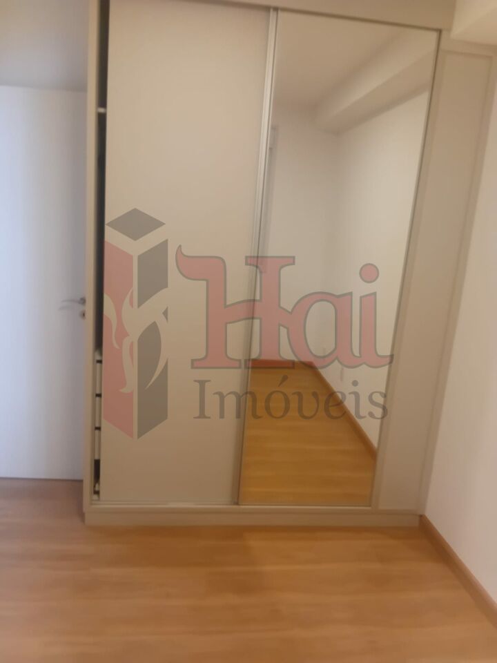 Apartamento com 1 dorm., com armario com porta de espelho e piso laminado, A sala com varanda e cortina e piso laminado tb. banheiro com box de blindex e a cozinha com ponto de gaz.