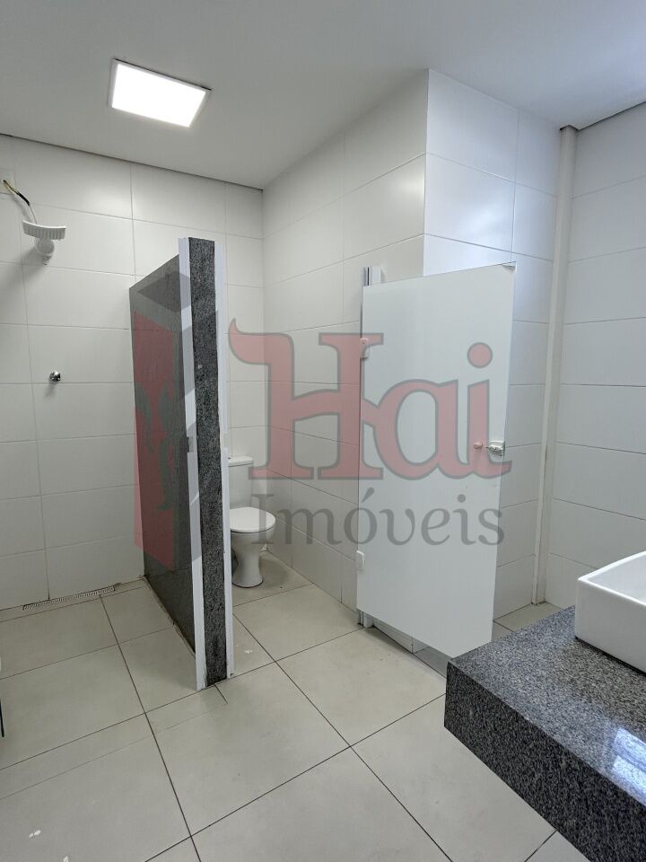 Térreo (502m²): salão com 407m² de vão livre, três salas, três banheiros, um vestiário, despensa e corredor nos fundos