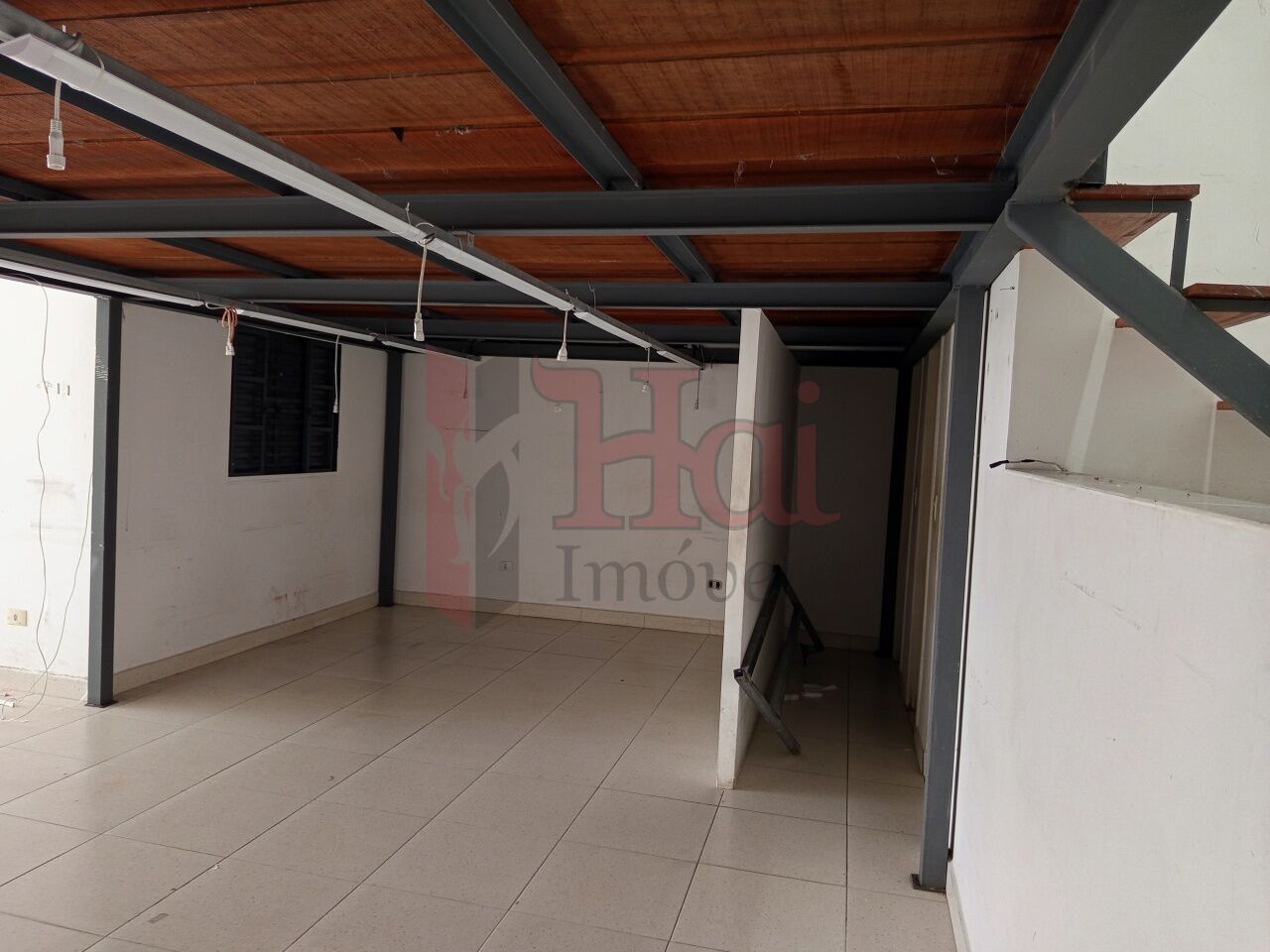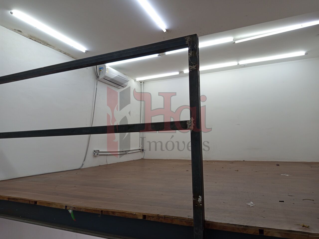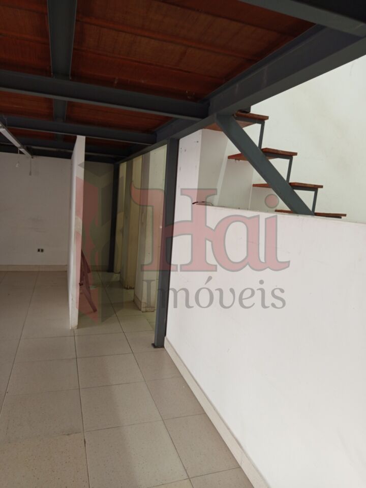 Salão comercial, claro com iluminação natural. Piso frio, mezanino e ar condicionado. 2 banheiros.